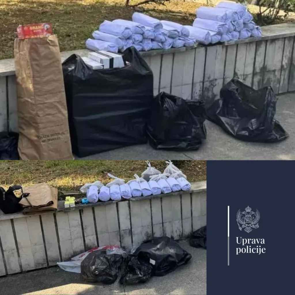 “Naime, policija je kontrolisalia vozilo danilovgradskih registarskih oznaka kojim je upravljao Š.M. i tom prilikom pronašla i oduzela 17 pakovanja sa sadržajem sasušenog duvana, 10 pakovanja tzv. rizli, dvije elektronske vage, 98 komada pakovanja praznih filtera za cigarete, kao i rokovnik sa evidencijom lica i brojčanim oznakama”, saopštila je Uprava policije (UP).