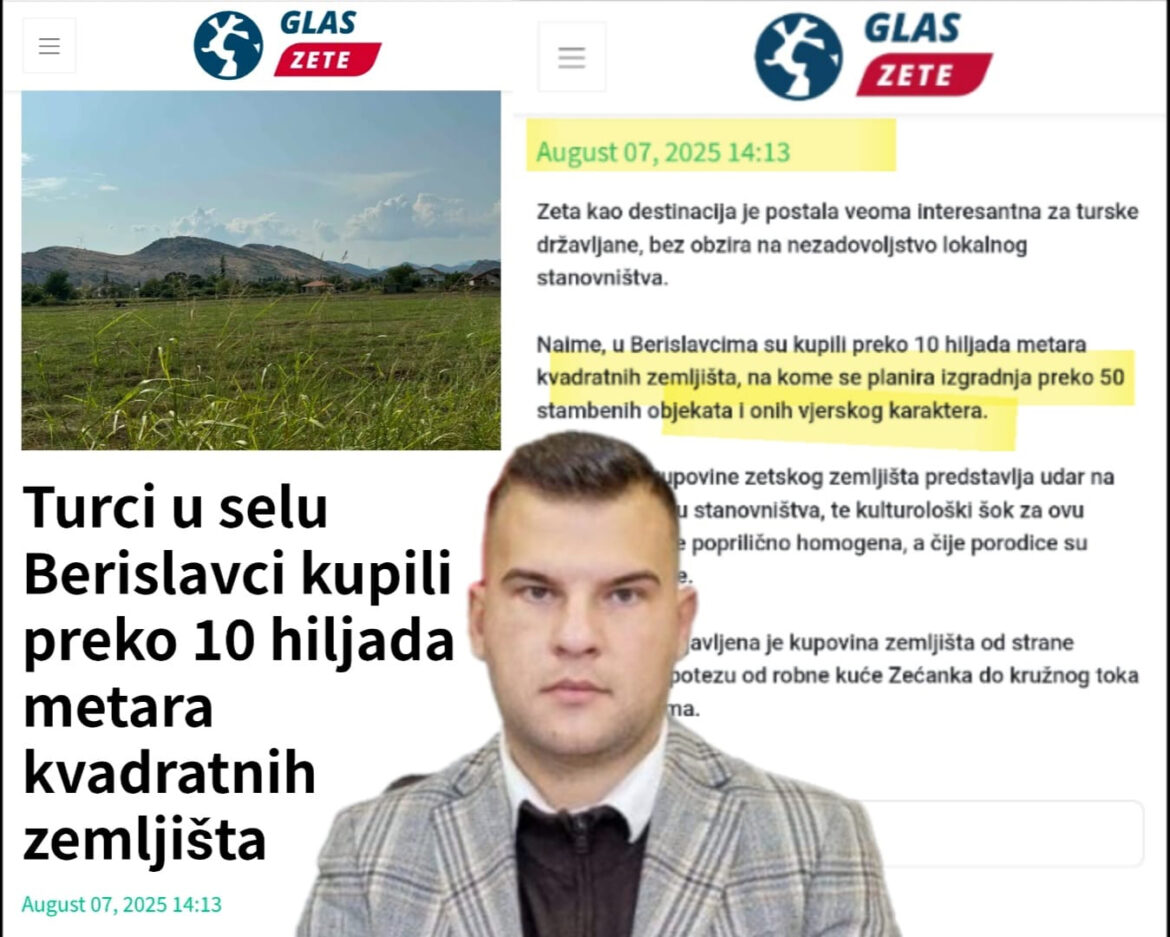 U tekstu od 7. avgusta tekuće godine navodi se da su u Berislavcima kupili „preko 10 hiljada metara kvadratnih zemljišta, na kome se planira izgradnja preko 50 stambenih objekata i onih vjerskog karaktera“.