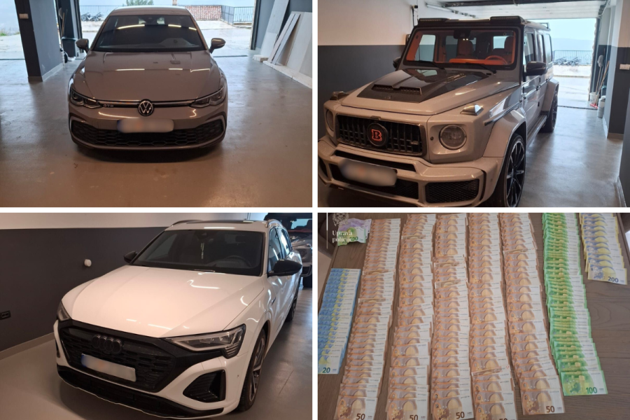 Tokom pretresa u garažama i na privatnim parkinzima pronađena su i privremeno oduzeta četiri luksuzna vozila, među kojima je jedno čija je vrijednost oko 500.000 eura, kao i oko 17.000 eura u kešu, dok će se porijeklo novca i tehničke opreme provjeravati.