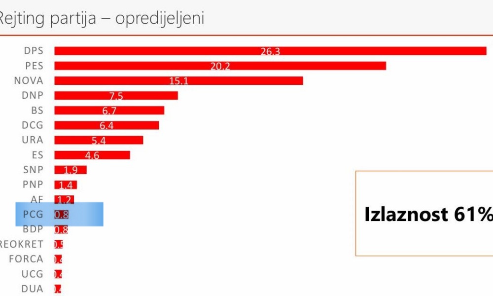 Home » Pokret za Crnu Goru Jakova Milatovića na 0,8 odsto podrške