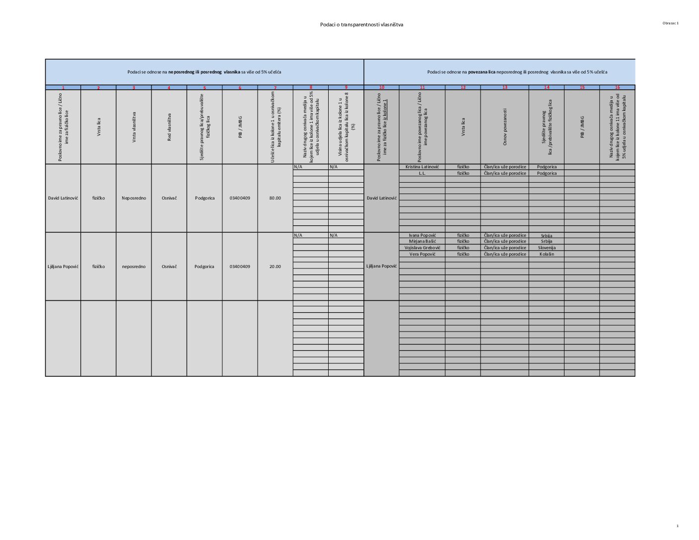 Detaljna vlasnička struktura – podaci o pravnim i fizičkim licima koja neposredno ili posredno imaju više od 5% udjela u osnivačkom kapitalu medija, kao i podaci o povezanim licima OVDJE.